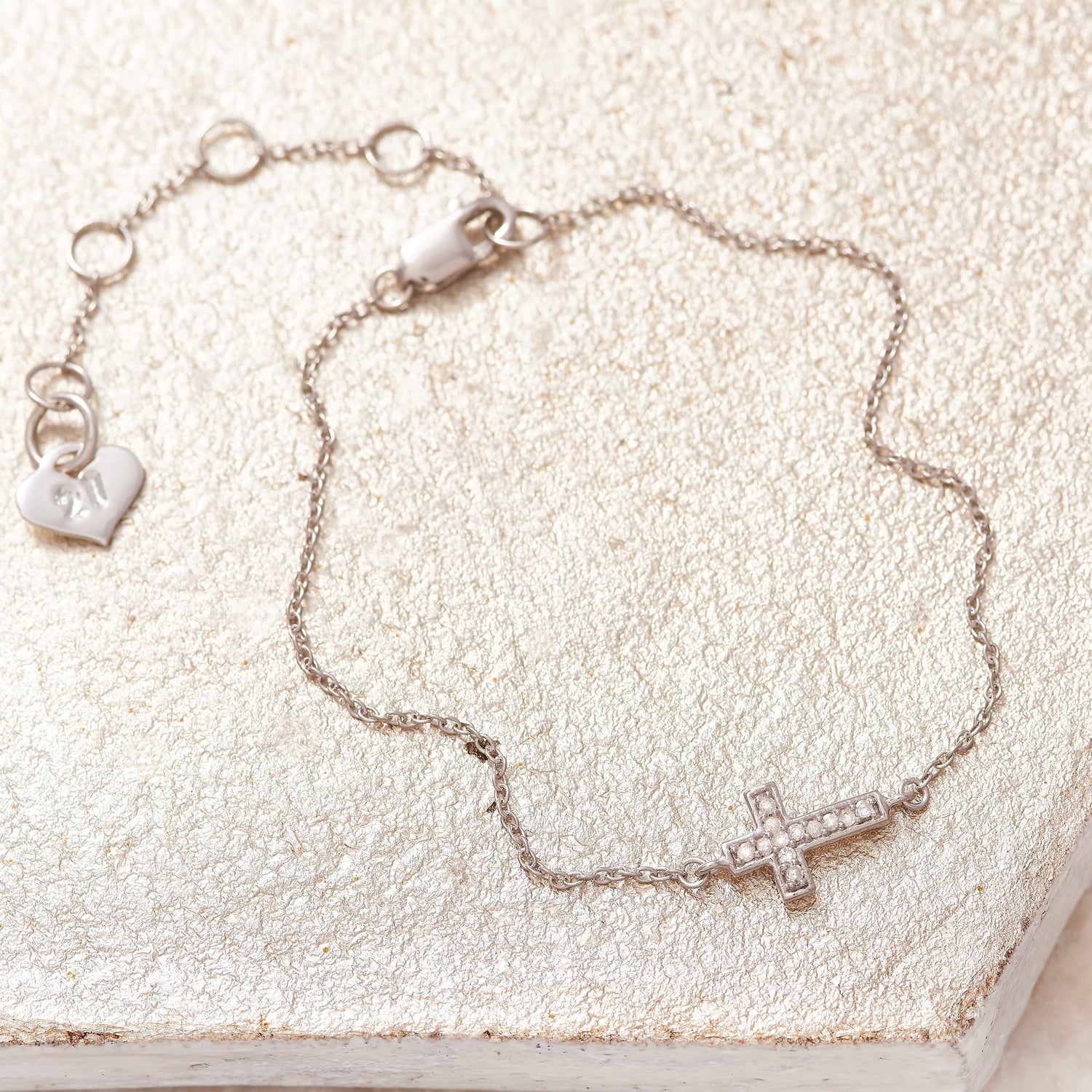 Featuring real diamonds set in sterling silver or gold vermeil, each dainty diamond bracelet can be customised with meaningful initials, stars, hearts, crosses and infinity symbols, perfect for christenings, confirmations, milestone birthdays, Valentine’s Day, or as a beautiful gift for your bridesmaids.