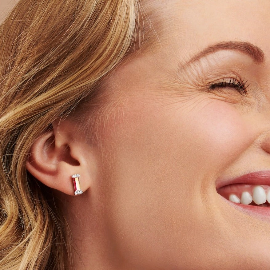 These colourful crystal faceted baguette birthstone studs are suitable for all ages. A thoughtful gift for your sister's 21st birthday and an ideal present for your mum's 60th birthday or simply treat yourself for a new look this season.